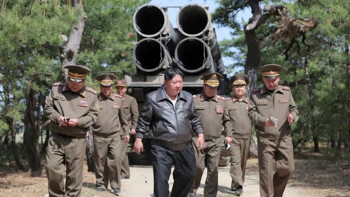 الزعيم الكوري الشمالي كيم جونج أون خلال الإشراف على تجربة صاروخية في مكان غير معروف بكوريا الشمالية. 8 مايو2025 - Reuters