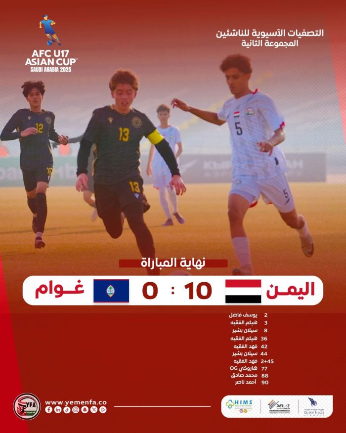 حقق منتخب اليمن للناشئين تحت 17 عاماً فوزاً كبيراً على منتخب غوام بنتيجة 10–0 ضمن منافسات المجموعة الثانية من التصفيات المؤهلة لكأس آسيا 2025، مقدماً واحدة من أقوى مبارياته في مشواره بالبطولة.