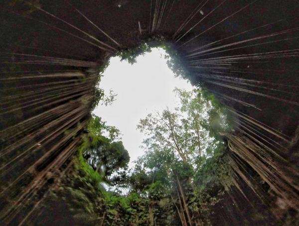 وانطلق فريق من علماء الكهوف والعاملين في الكهوف في الهبوط الأرضي يوم الجمعة (6 مايو)، ليكتشفوا أن هناك ثلاثة مداخل كهوف في الحفرة، بالإضافة إلى الأشجار القديمة التي يبلغ ارتفاعها 131 قدما (40 مترا)، وتمتد أغصانها نحو ضوء الشمس الذي يمر عبر مدخل الحفرة.