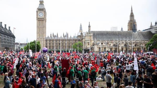 وتدفقت حشود ضخمة إلى العاصمة البريطانية لمطالبة الحكومة ببذل مزيد من الجهد لمساعدة المواطنين الذين يواجهون ارتفاع نفقات المعيشة بسرعة أكبر من أجورهم. وتعرض رئيس الوزراء بوريس جونسون لانتقادات لتباطؤه في مواجهة أزمة غلاء المعيشة.