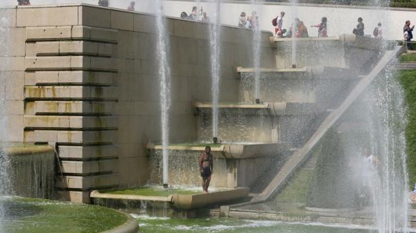 وفي العاصمة باريس، لجأ الناس إلى النوافير ليغطسوا بالمياه في وقت مُنع الاستحمام في نهر السين.
