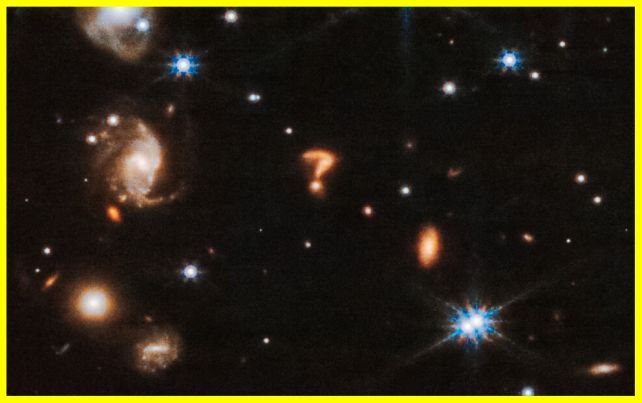 عند تكبير أحدث صورة من صور الفضاء التي وصلتنا من تلسكوب جيمس ويب الفضائي، وجدنا مفاجأة في انتظارنا. هناك تفاصيل لماعة ومزخرفة في خلفية وِلادة نجم مذهل تشبه علامة الاستفهام.