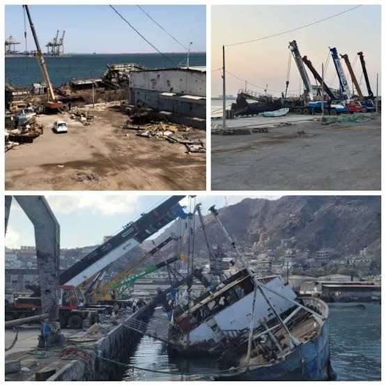 وأشارت إلى أن أعمال انتشال السفن الغارقة يتزامن مع إجراء الدراسات الهندسية والفنية لمرافق الميناء ممثلة بالرصيف البحري والثلاجة المركزية لحفظ الأسماك والورش المركزية وغيرها، تمهيداً لإعادة تأهيلها وتشغيل الميناء من جديد باعتباره أكبر ميناء سمكي بالبلاد.